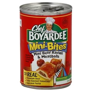 Chef Boyardee Spaghetti & Meatballs, 15 oz Cans (Pack of 24) Each 14.5 oz, easy-open can of Chef Boyardee Spaghetti and meatballs contains 2 servings of meatballs, pasta, and tomato sauce, with 9 grams of protein and 260 calories per serving. With no artificial flavors, colors, or preservatives, Chef Boyardee makes a wholesome meal for kids of all ages. Product information Flavor:Spaghetti & Meatballs