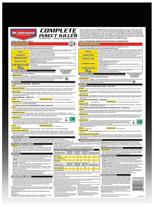 Maxforce Complete Granular Insect Bait Product | Bayer ES US ALWAYS READ AND FOLLOW LABEL INSTRUCTIONS. Bayer Environmental Science, a Division of Bayer CropScience LP, 5000 CentreGreen Way, Suite 400, Cary, NC 27513. For additional product information, call toll-free 1-800-331-2867. . Not all products are registered in all states. Bayer Advanced Complete Insect Killer For Soil & Turf Granules Bio Advanced Complete Insect Killer For Soil & Turf Granules kills the most common lawn pests like ants, fleas, ticks, grubs, and more. This is a two-way formula that treats the surface and the soil. Surface insects are killed within 24 hours, while soil insects are controlled for up to three months. Kills Over 30 Outdoor Listed Pests in Lawns & ... Bayer Complete Insect Killer Concentrate - Amazon Complete Insect Killer For Lawns Concentrate. Works Above Ground To Kill Fleas. Ticks Ants Chinch Bugs Cutworms Other Listed Insects. Controls Sub Surface Pests Like Grubs Mole Crickets European Crane Fly. Kills Surface Insects On Contact. Protection Lasts 90 Days. Active Ingredients Beta Cyfluthin Imidacloprid. Capacity - 32 oz.. Complete Brand Insect Killer For Soil & Turf - Bioadvanced Kills listed surface insects in 24 hours. Kills soil insects for up to 3 months. Insect killer that kills the most common lawn pests, including: Mosquitoes, Ants, Fleas, Ticks, European Crane Fly Larvae, Grubs, Mole Crickets and other listed insects.