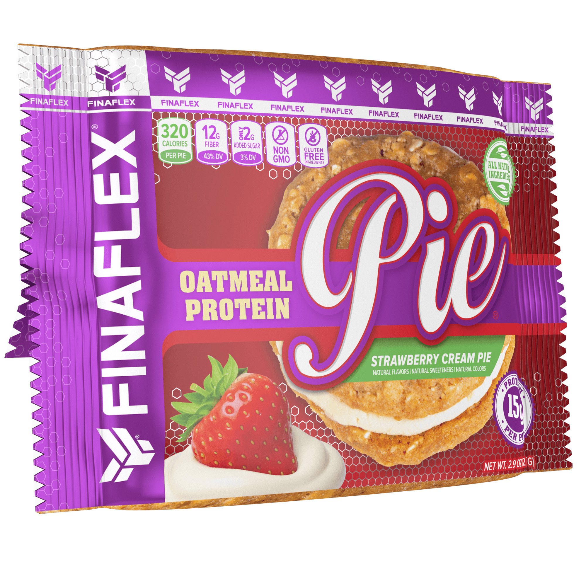 Finaflex Oatmeal Protein Pie - Muscle & Strength Finaflex Oatmeal Protein Pie 14 grams of high quality protein in every pie 12 grams of fiber per serving Only 8 grams of sugar and all-natural ingredients Non-GMO, kosher, egg and soy free