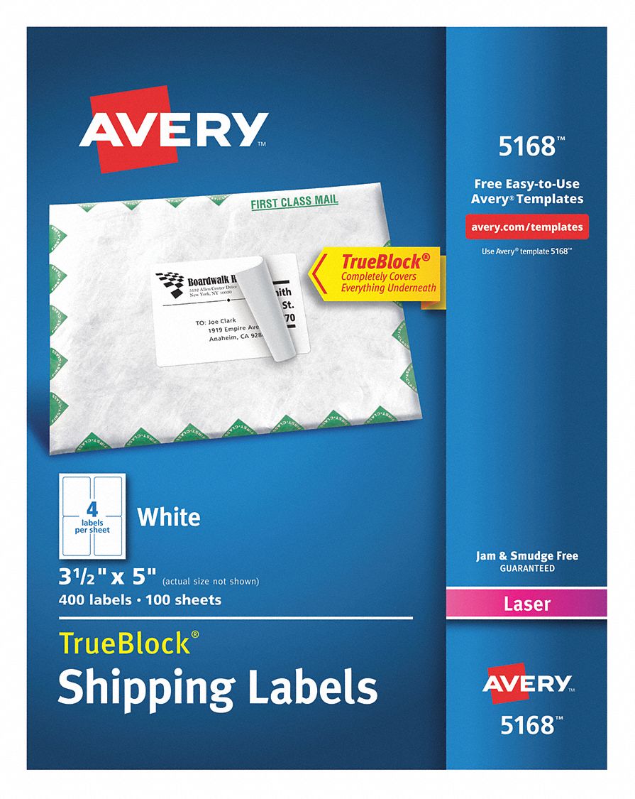 Avery® TrueBlock® Shipping Labels, Sure Feed™ Technology, Permanent Adhesive, 3-1/2" x 5", 400 Labels (5168)