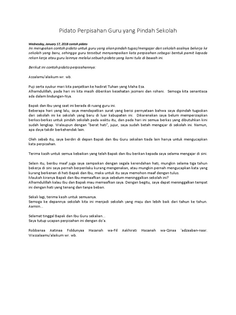 Kumpulan Ucapan Perpisahan untuk rekan yang pindah tugas ... - TalitaShare Kumpulan Ucapan Perpisahan untuk rekan yang pindah tugas Kerja Sebagai rekan kerja, kamu adalah perisai yang melindungi kami dari bentakan Bos dan sebuah senjata yang menolong kami ketika berperang dengan target bulanan. Sampai jumpa.. Suka cita dalam kerja tim yang selalu kita lakukan membuatku banyak belajar. Aku bahagia bisa mengenal kalian. Ucapan Perpisahan Untuk Guru Yang Pindah Tugas / Pidato Perpisahan ... Famous kata kata perpisahan untuk guru yang akan pindah tugas 2022. Maka itu, baiknya kita menyampaikan rasa terima . Sebagai bentuk penghargaan untuk para guru, seorang siswa bisa memberikan hadiah berupa kado atau bingkisan saat perpisahan sekolah. " tugas pendidik modern bukanlah menebang hutan, tetapi mengairi gurun . Ucapan Perpisahan Guru Berpindah - Ucapan Salam Perpisahan Kepada ... Contoh ucapan perpisahan dan terima kasih untuk guru sekolah tk, sd, smp, sma · 1. Ucapan perpisahan bisa disampaikan kepada guru . 5 contoh ucapan perpisahan untuk guru yang pindah tugas. Contoh kata perpisahan untuk guru sangat beragam mulai dari ucapan terima kasih hingga permintaan maaf pengalamanpengalaman nakal konyol dan .
