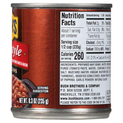 Van Camps Pork and Beans, in Tomato Sauce - Cub Foods Per 1/2 Cup Serving: 120 calories; 0 g sat fat (0% DV); 390 mg sodium (17% DV); 8 g total sugars. 6 g of protein per serving. . how2recycle.info. SmartLabel: Scan for more food information. Questions or comments, visit us at or call Mon -Fri , 1-800-826-2267 (except national holidays).