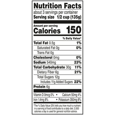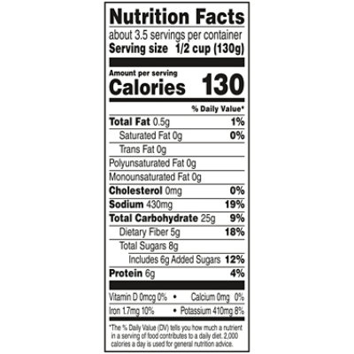 Van camp's pork and beans, 15 oz., 15 oz by Conagra Brands Van camp's pork and beans, 15 oz., 15 oz by Conagra Brands contains 120 calories per 130 g serving. This serving contains 1 g of fat, 6 g of protein and 23 g of carbohydrate. The latter is 7 g sugar and 6 g of dietary fiber, the rest is complex carbohydrate. (4 Pack) Campbell's Canned Beans, Pork & Beans, 11 oz. Can Attention budgeters: the following products are cheaper than (4 Pack) Campbell's Canned Beans, Pork & Beans, 11 oz. Can: Van Camp's Pork and Beans, Campbells Pork & Beans, Van Camp's Pork and Beans, and Great Value Pork & Beans, 15 ounces.If you're still making up your mind, you might want to take a look at these products too: Hanover Pork & Beans, Hanover Pork & Beans, The Allens Wagon Master ... Van Camp's Pork And Beans Nutrition Label - This Nutrition Author: Maryam Ayres Last Updated: August 08, 2022. Learn more information about van camp's pork and beans nutrition label. In this article we'll discuss van camp's pork and beans nutrition label. Nutrition Facts for Van Camp's Pork & Beans • MyFoodDiary® Nutrition Facts for Van Camp's Pork & Beans • MyFoodDiary® Van Camp's Pork & Beans Canned Nutrition Facts Serving Size cup 0.5 cup = 130g Amount Per Serving 120 Calories % Daily Value* 2% Total Fat 1g 0% Saturated Fat 0g Trans Fat 0g 0% Cholesterol 0mg 17% Sodium 390mg 8% Total Carbohydrate 23g 21% Dietary Fiber 6g Total Sugars 8g 12%