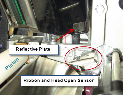 MVP Series - Error Condition: "Paper Out" - Correct placement of the ... 1) Open the printer and press the release tab to open the print head, and pull the label material out of the way to provide a clear view of the sensor adjustment. 2) For notched material, the sliding sensor adjustment will need to be all the way to the inner wall of the material, indicated by the Innermost white mark on the sensor adjustment bar.