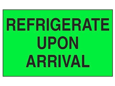 "Refrigerate Upon Arrival" Labels - 2 x 3" S-8242 - ULINE Ensure proper handling. Eliminate tedious handwritten instructions. Recommended for pallets and large packages. Large pressure-sensitive fluorescent labels stand out and get noticed.ULINE offers over 38,500 boxes, plastic poly bags, mailing tubes, warehouse supplies and bubble wrap for your storage, packaging, or shipping supplies.