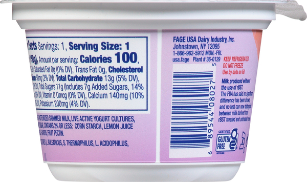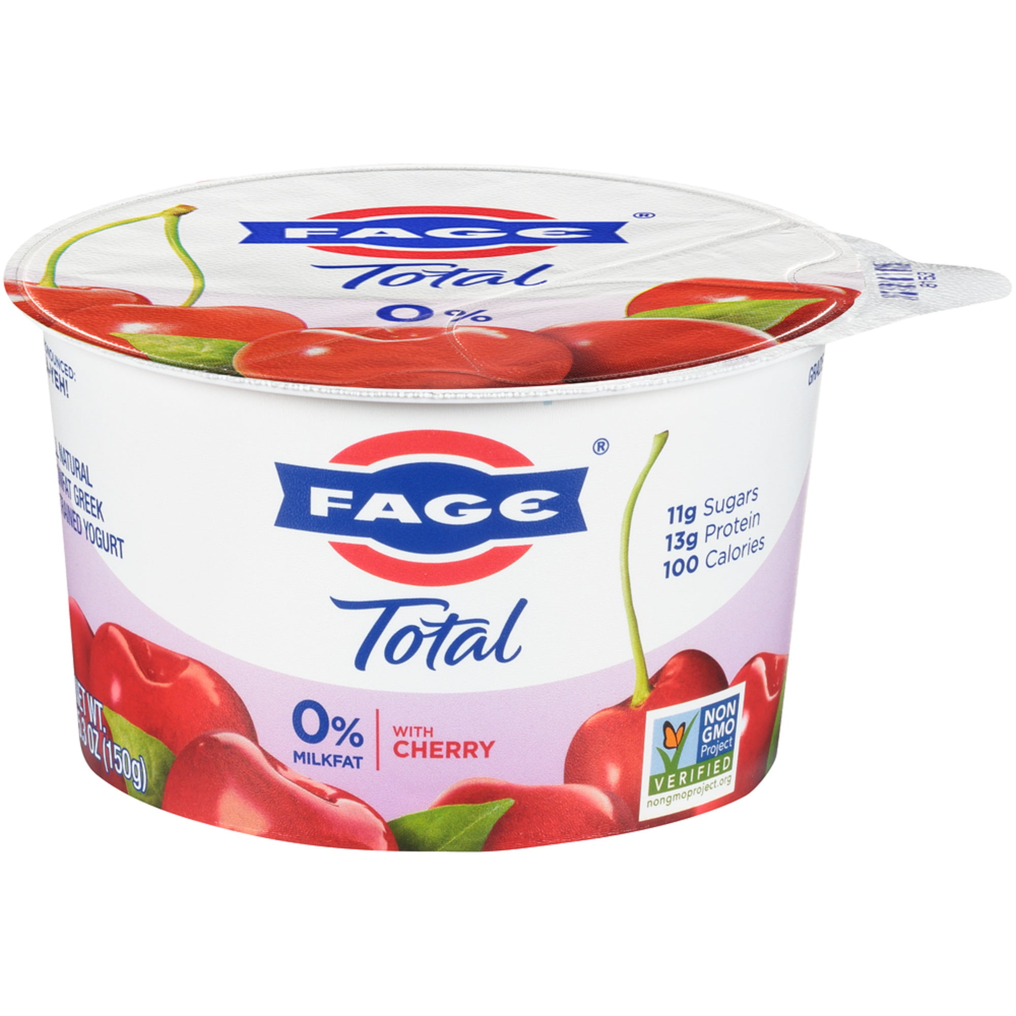 Greek Yogurt Nutrition Facts - FAGE FAGE Total Plain. Nonfat 0%; Reduced Fat 2%; Whole Milk 5%; FAGE Total Split Cup. Peach; Black Cherry; Strawberry; Honey; Blueberry; Mixed Berries; Mango Passion Fruit; Strawberry Watermelon; Raspberry; FAGE Total Blended Blueberry; Cherry; Peach; Strawberry; Vanilla; Mixed Berries; FAGE BestSelf; FAGE Sour Cream