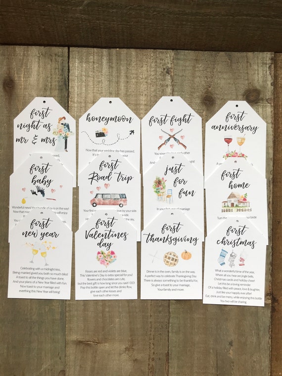 EDITABLE Marriage Milestone Wine Basket Tags A Year of First - Etsy Aug 16, 2020 - A YEAR OF FIRSTS . WINE TAGS . FREE SHIPPING! Who doesnt love to get some wine and bubbly as a gift?! These tags make the perfect addition to ...
