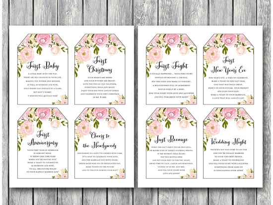 Printable Wine Labels - Wine Bottle Labels | Avery With our Avery design tool and free printable wine label templates, you can easily create your homemade wine labels. Even without experience, it's a straightforward way to make wine labels. Avery also offers a free label template library so you choose a free printable wine label template, customize it and print. Milestone Wine Basket with Free Lables | Years of Firsts Gift The wedding wine basket tag is a PDF, and it is not personalized, meaning none of these poems include the bride or groom's name. Therefore, it's easy for you to simply print, cut, and attach. No formatting necessary 🙂 Making the Wine Basket Tags First, I printed the wine tag sheet out on thick manila paper. Marriage Milestone Wine Bottle Gift Tags, Instant Download ... Marriage Milestone Wine Bottle Gift Tags, Instant Download, Printable, Wedding Gift, Wedding Ideas, Bridal Shower, Bachelorette Party, 1M from Joytations.